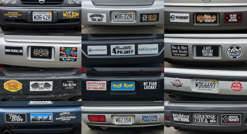 Number plate visibility requirements represent the most universally enforced regulation across all Australian jurisdictions. Legal bumper sticker placement guidelines specify that all letters and numbers on registration plates must remain completely legible from 18 meters distance under normal daylight conditions. This requirement means stickers cannot overlap, obscure, or even partially cover any portion of the registration plate, including border areas that might seem unimportant but are actually part of the required visibility zone.