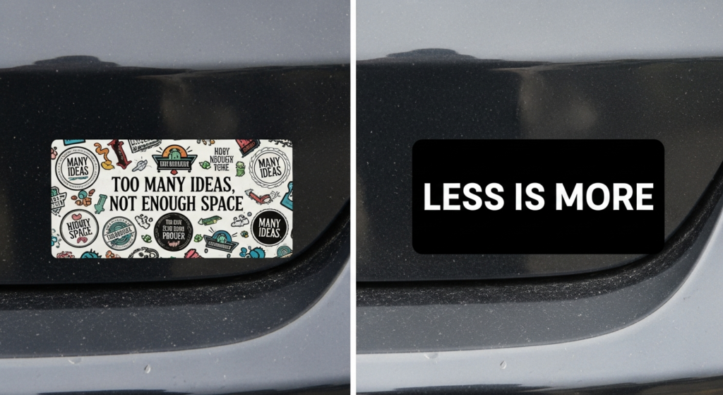 Simplicity emerges as the most critical design principle for bumper sticker success. Complex graphics, intricate illustrations, or cluttered layouts that might look impressive on a computer screen become unreadable chaos when viewed from 10-20 meters away while traveling at 60 kilometers per hour. The human eye and brain can only process so much information in those crucial few seconds, making it essential to focus on one primary message supported by minimal secondary elements.