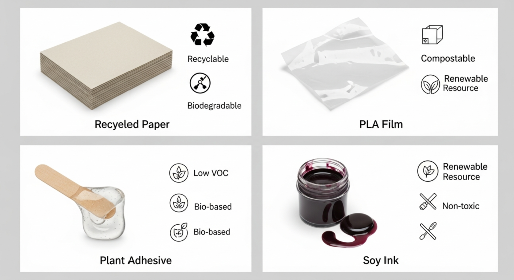 The three pillars of sustainable stickers form the foundation for evaluating any eco-friendly option. Renewable materials include plant-based films derived from corn starch, cellulose, or agricultural waste, as well as papers made from rapidly renewable resources like bamboo or hemp. These materials offer the dual benefit of reducing dependence on finite fossil fuel resources while often providing superior biodegradability at end-of-life.